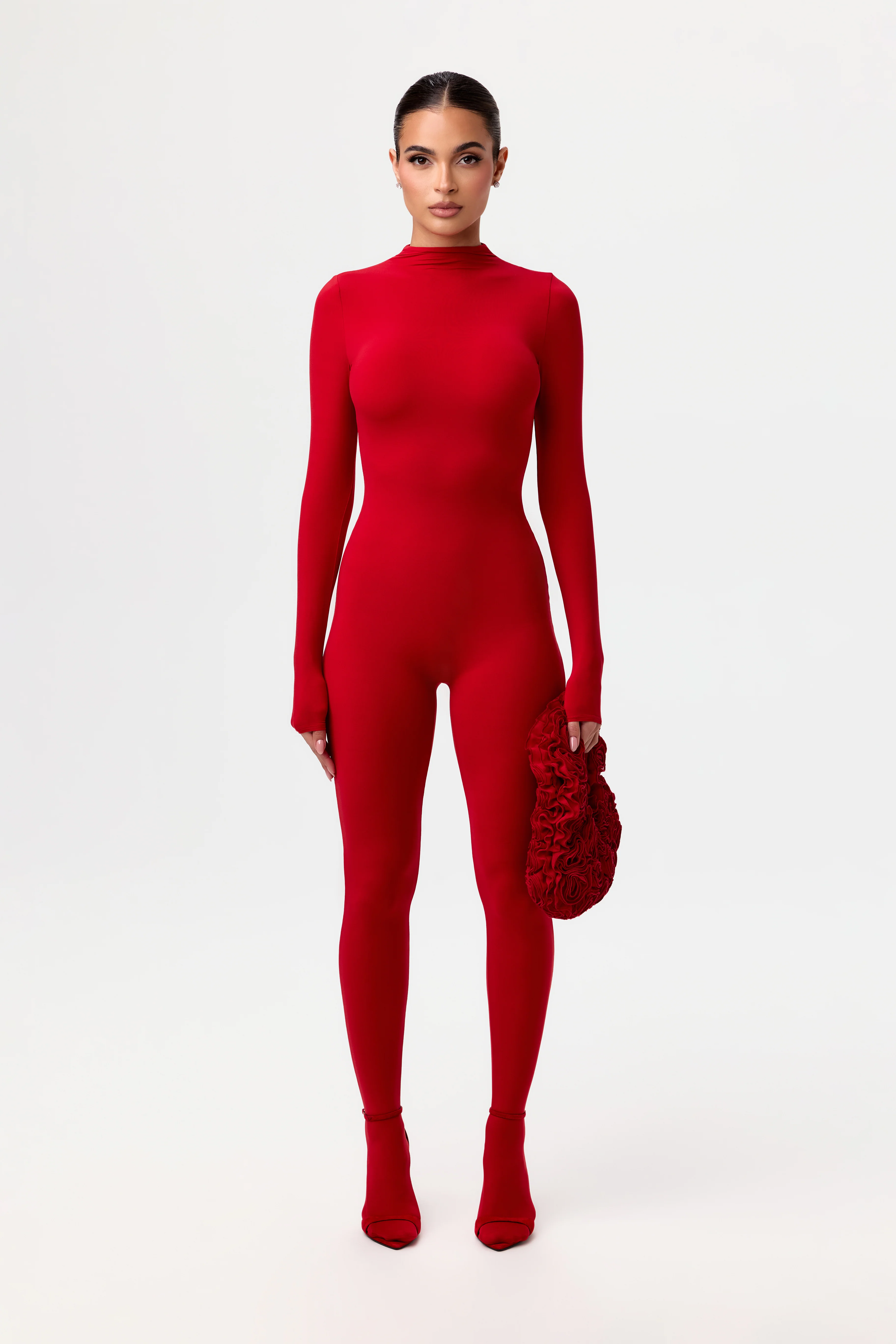 Make a statement. Constructed with a luxe rose petal texture and soft inner lining and magnetic closure. From dinner plans to wedding guest plans, this art-driven purse is ready for the good times.